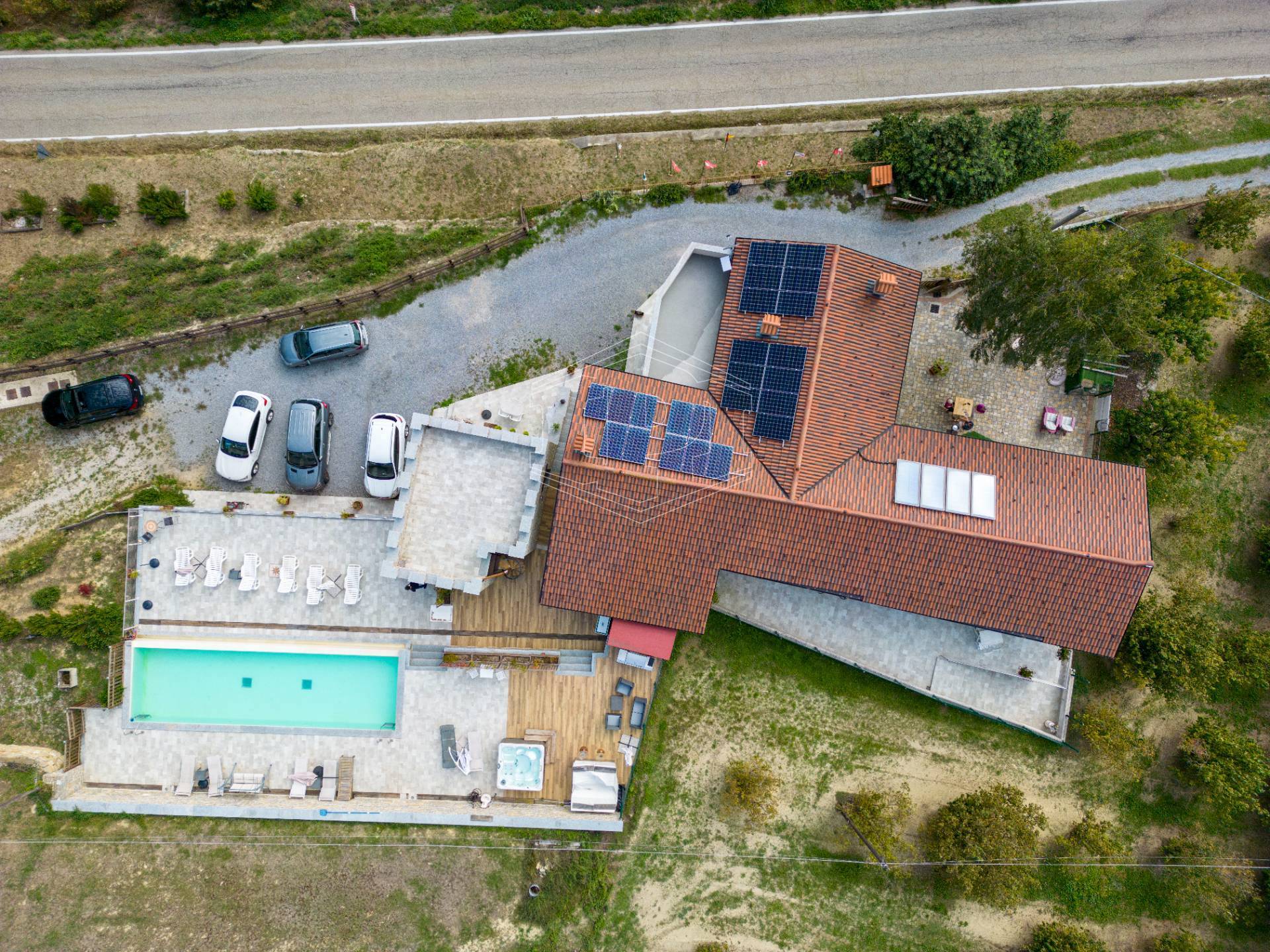 L'intero immobile è servito da impianto di riscaldamento a metano con caldaia a condensazione e distribuzione tramite radiatori e fan-coil. È presente la connessione WiFi in tutte le aree, impianto di illuminazione esterna e sistema di sicurezza.