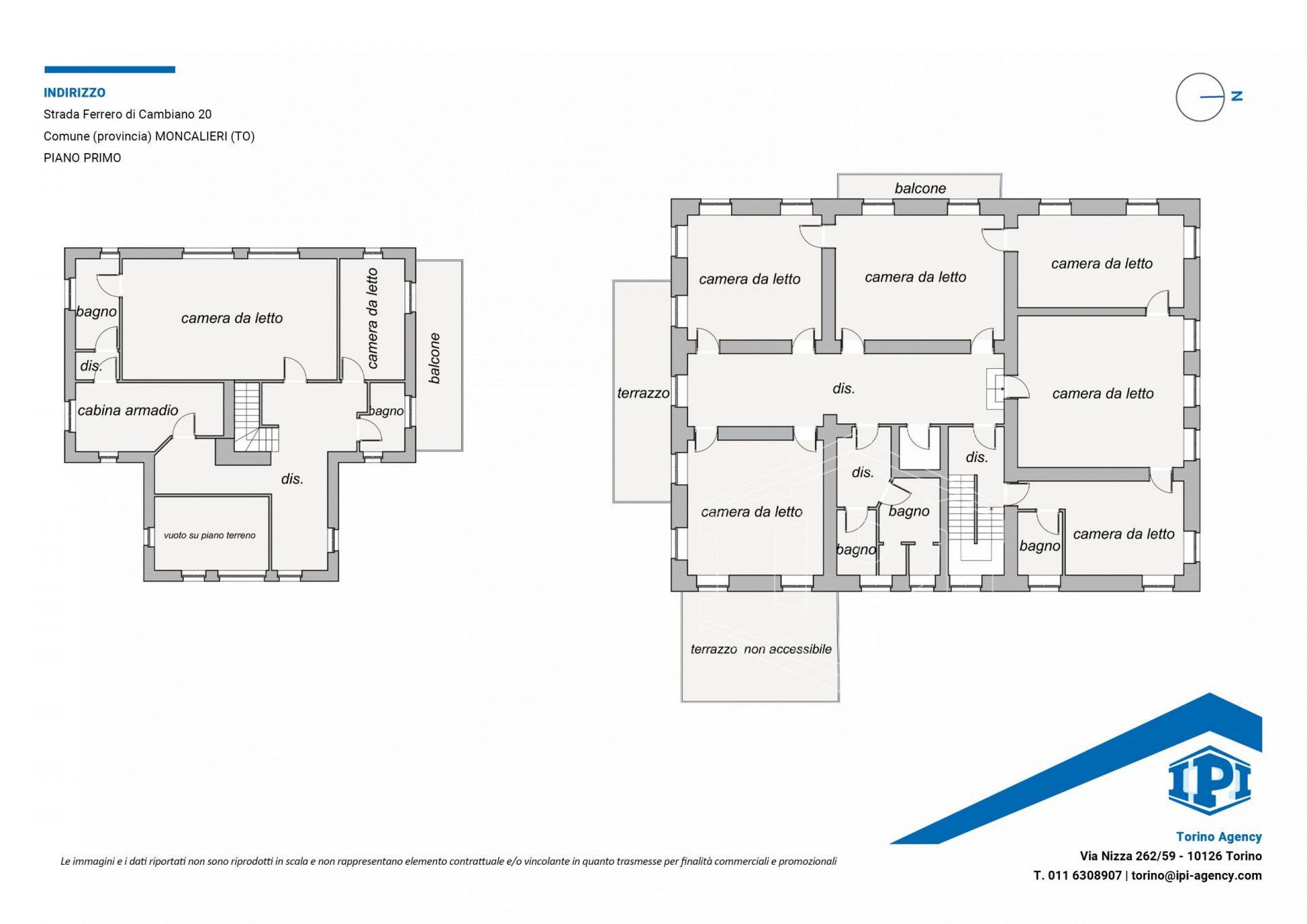 Villa Padronale (ex residenza Sabauda) con dependance. Entrambi gli edifici sono liberi su quattro lati.