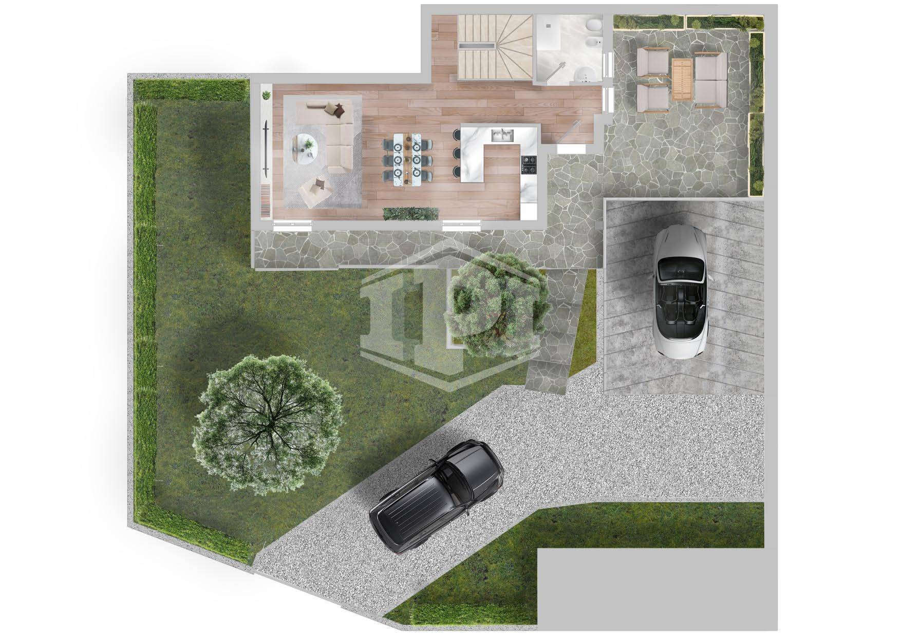 . piano terra - zona giorno luminosa con ambienti ampi, perfetti per creare un grande salone open-space con cucina a vista e servizio;