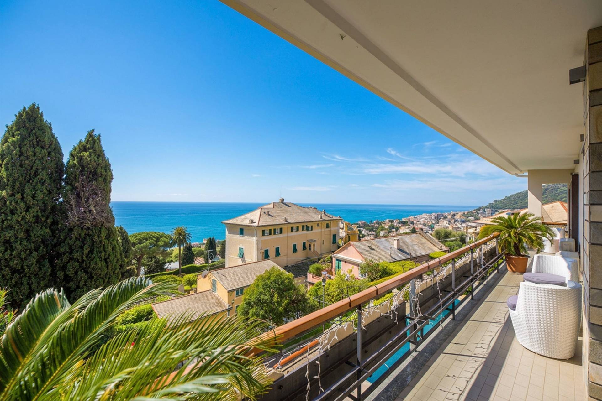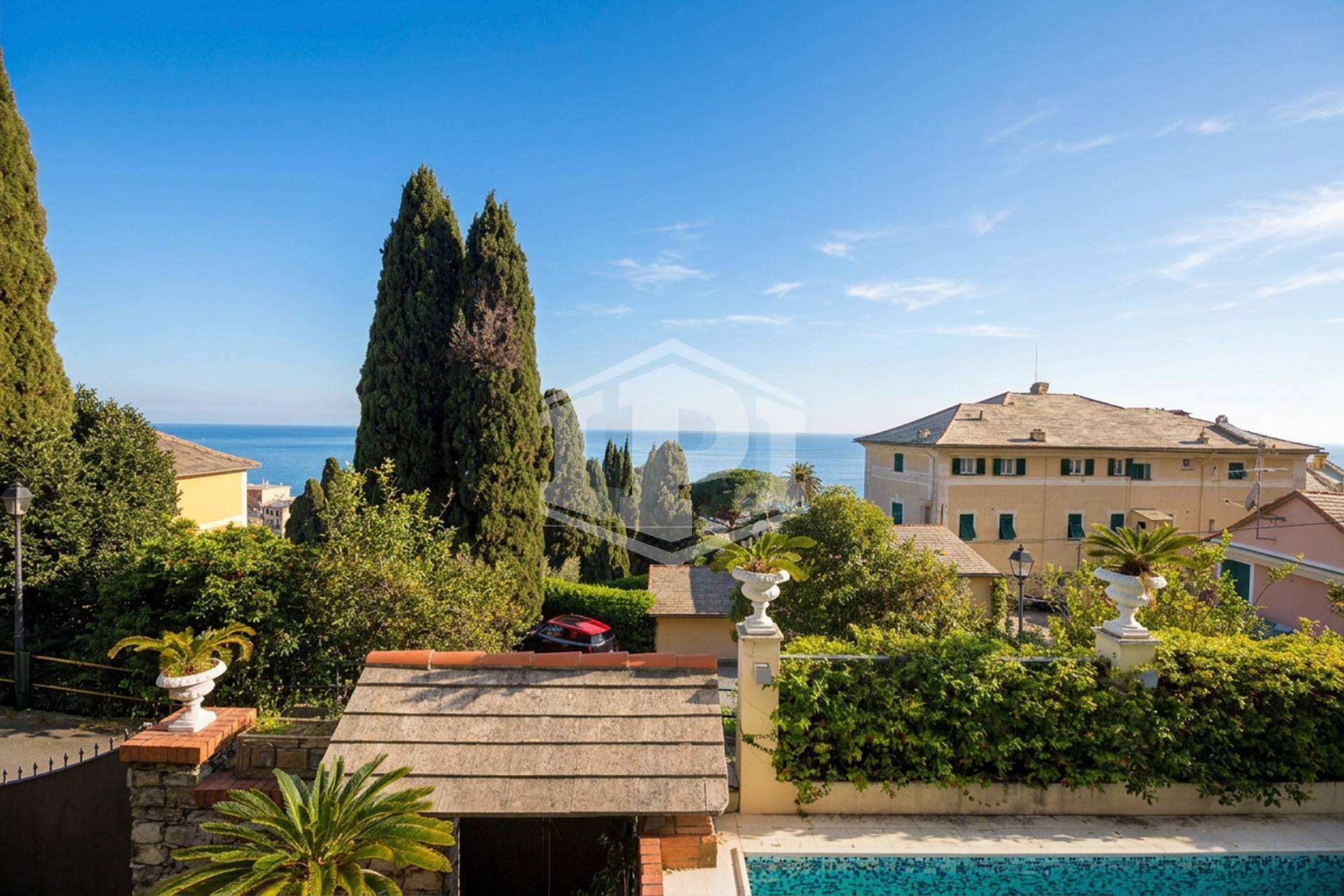 IPI Agency propone in vendita, in Via dei Floricoltori, in posizione panoramica e riservata, a pochi passi dal Parco di Nervi e dalla suggestiva passeggiata a mare, un'esclusiva villa con piscina privata.