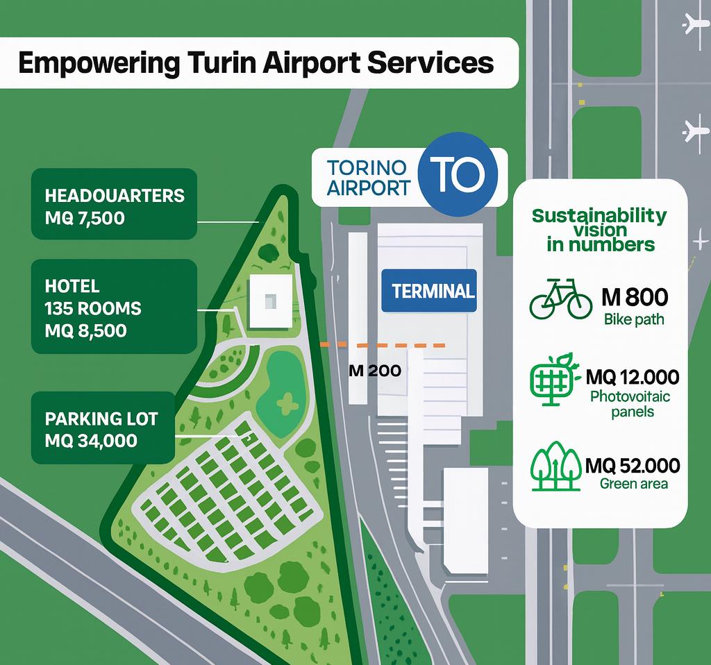 Destinazioni d’uso ammesse: turistico-ricettivo, terziario, infrastrutture aeroportuali